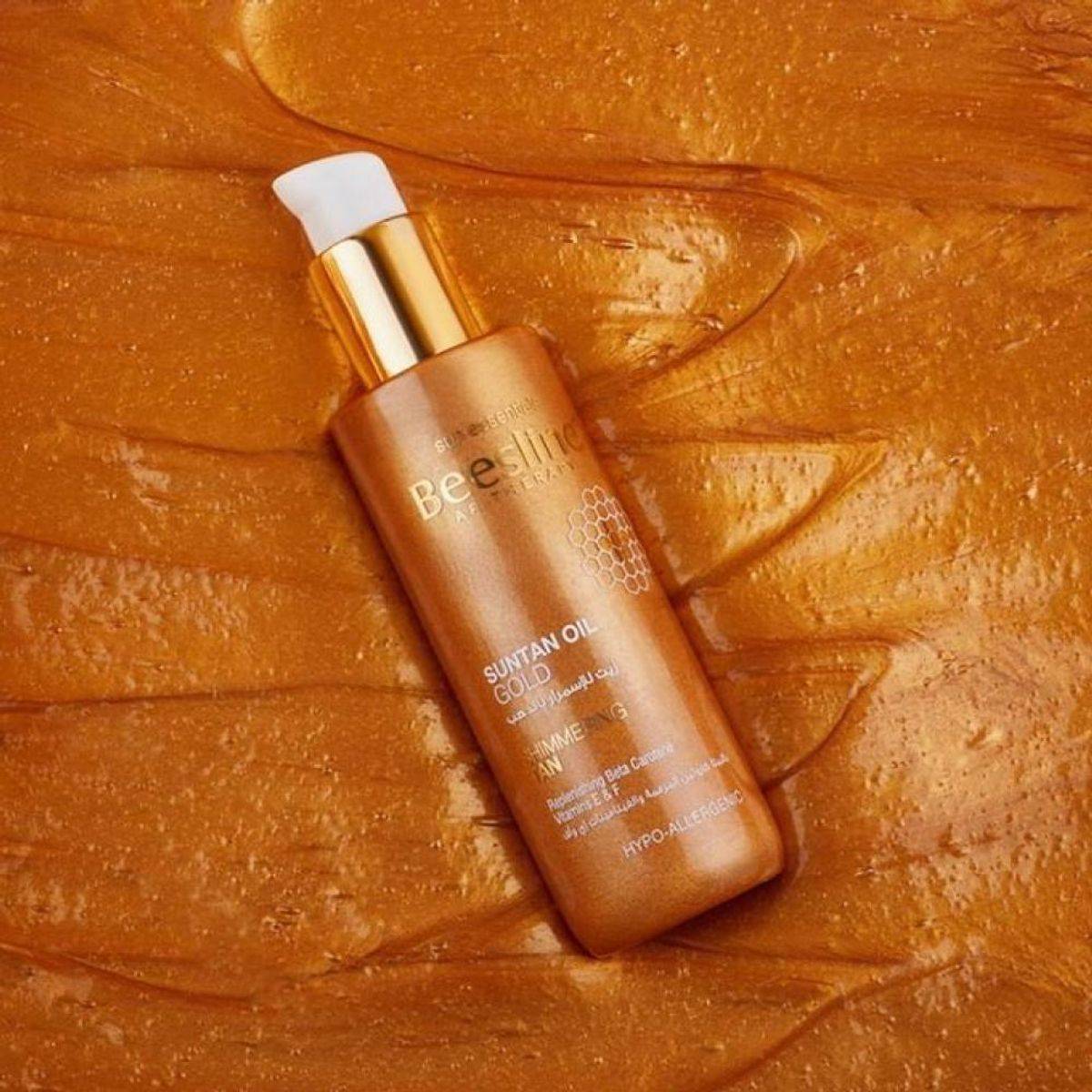 Beesline Suntan Oil Gold is a shimmering suntan oil enriched with antioxidant Beta Carotene and Vitamins E & F. It is hypoallergenic and suitable for sensitive skin, providing a golden tan while nourishing the skin.
