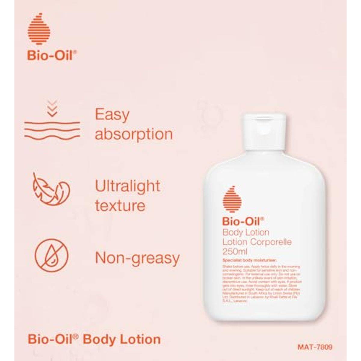 Bio Oil Body Lotion is a specialist body moisturizer designed to hydrate and improve skin elasticity. Infused with natural oils, it reduces scars and stretch marks, suitable for all skin types.