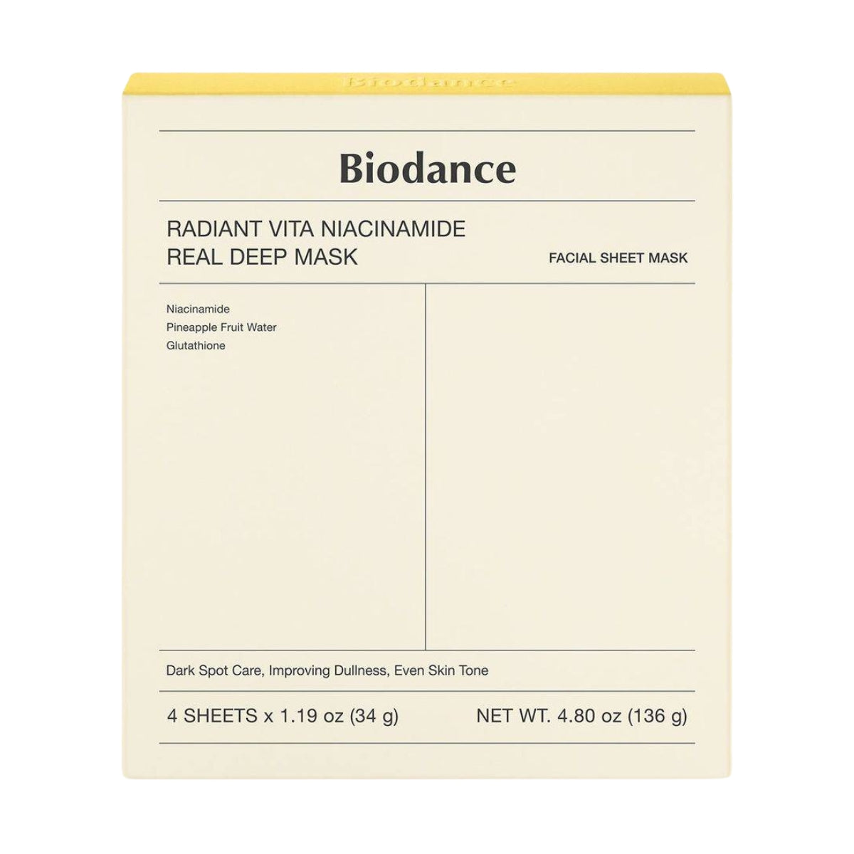 - Biodance Radiant Vita Niacinamide Real Deep Mask 4 x 34g