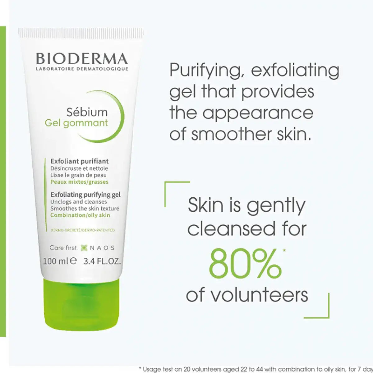 Bioderma Sebium Exfoliating Purifying Gel is designed for combination to oily skin. It unclogs pores, smooths skin texture, and brightens complexion. The gel features micro-beads and keratolytic ingredients to target irregularities and promote cell renewal. Ideal for maintaining clear and healthy skin.