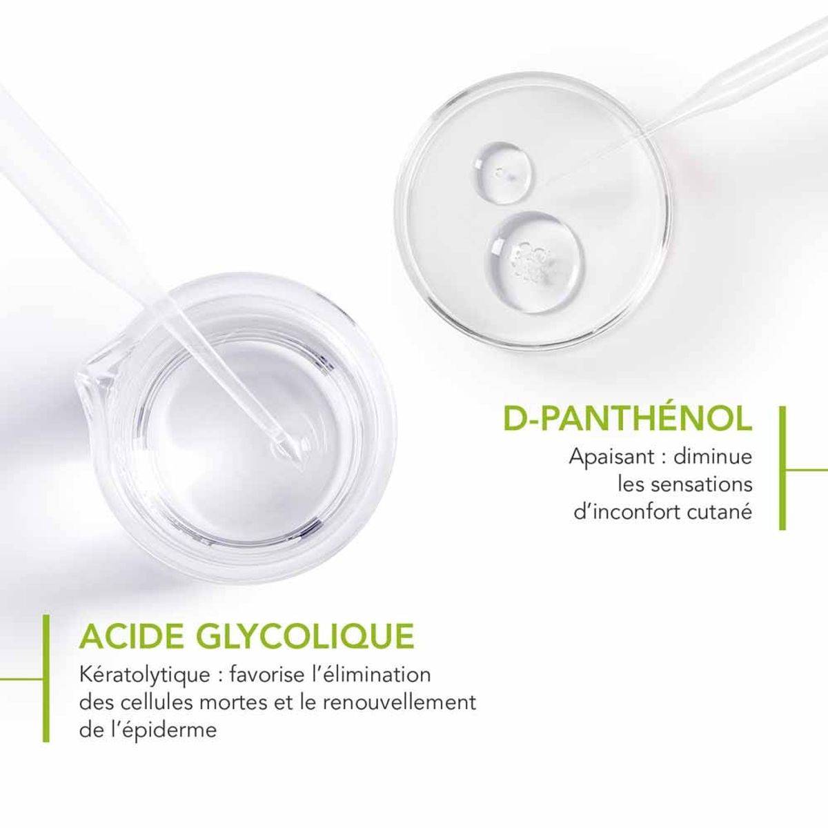 Aqua/Water/Eau, Glycolic Acid, Sodium Hydroxide, Panthenol, Ammonium Acryloyldimethyltaurate/VP Copolymer, Dipropylene Glycol, Hydroxyethylcellulose, Mannitol, Propyl Gallate, Xylitol, Sodium Metabisulfite, Rhamnose, Fructooligosaccharides, Caprylic/Capric Triglyceride, Laminaria Ochroleuca Extract, Fragrance (Parfum).