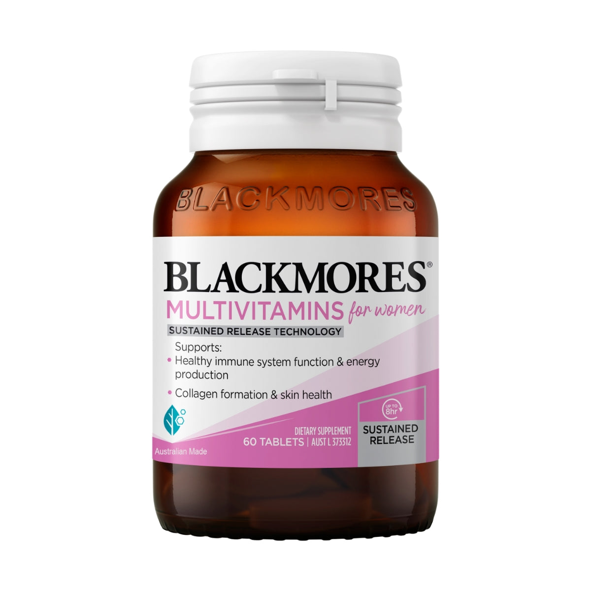 Blackmores Multivitamin for Women is formulated with sustained release technology, so that key ingredients are gradually released over 8 hours across the day, to support healthy immune system function, energy Blackmores Multivitamin for Womenion, collagen formation, skin health and thyroid function, while supporting mental fatigue and a healthy stress response in the body.