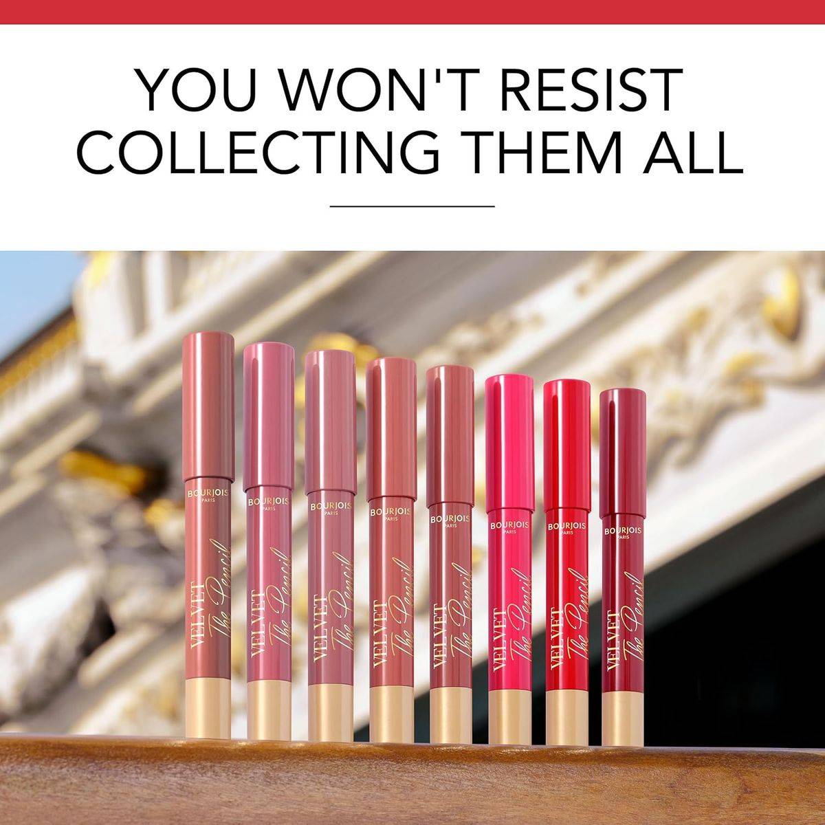 Bourjois Velvet The Pencil Lipstick offers intense color and precision in one stroke. Its creamy formula glides effortlessly, providing comfortable, long-lasting wear with a bold, velvety finish perfect for everyday elegance.