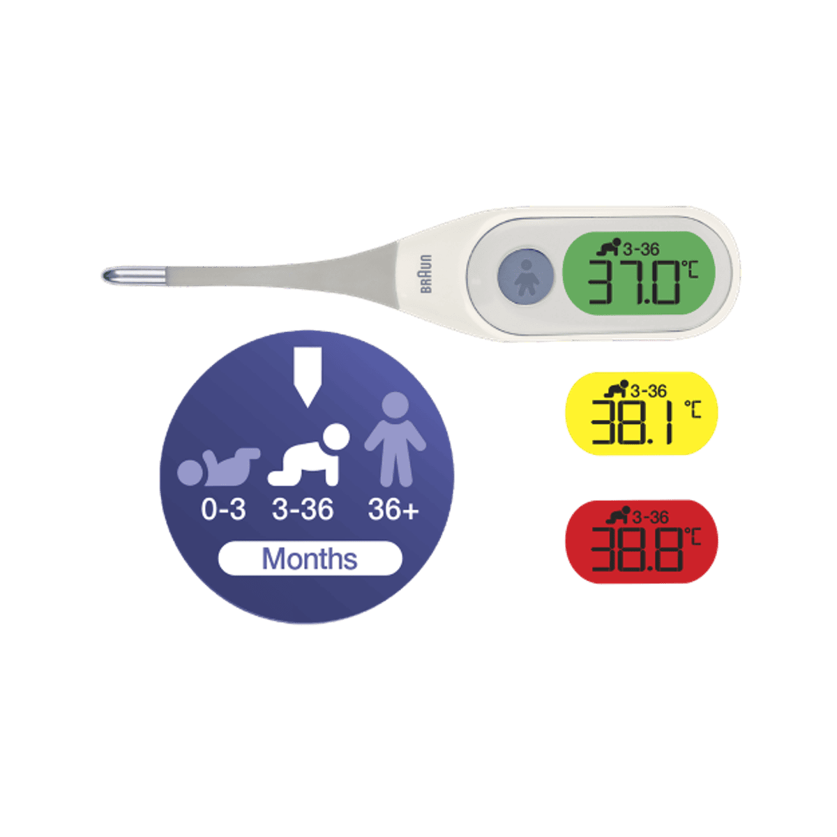 The Braun Axillary Digital Thermometer with Age Precision is designed for accurate temperature readings. It features age-adjustable fever guidance, a color-coded display, and a flexible tip for comfort. Ideal for families, it provides fast 8-second readings and is BPA-free.