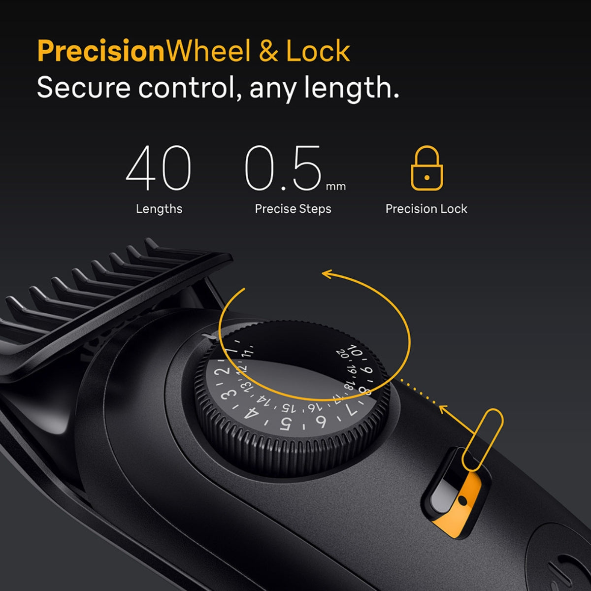- Features : Ultra sharp blade, PrecisionLock. Flawless control., 40 length settings, Up to 120 min cordless runtime., 100% Waterproof.