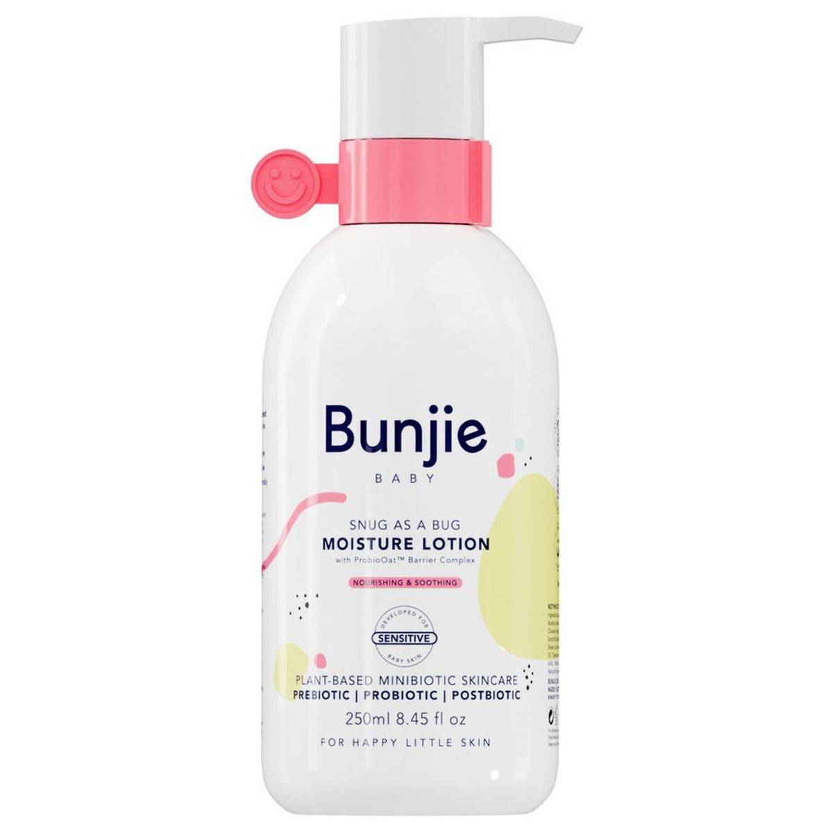 Bunjie Moisture Lotion is a nourishing and soothing lotion designed for sensitive baby skin. Formulated with a Probio Oat Barrier Complex, it offers plant-based mini-biotic skincare with prebiotics, probiotics, and postbiotics. Ideal for face and body, it is 100% toxin-free and ultra-hydrating.