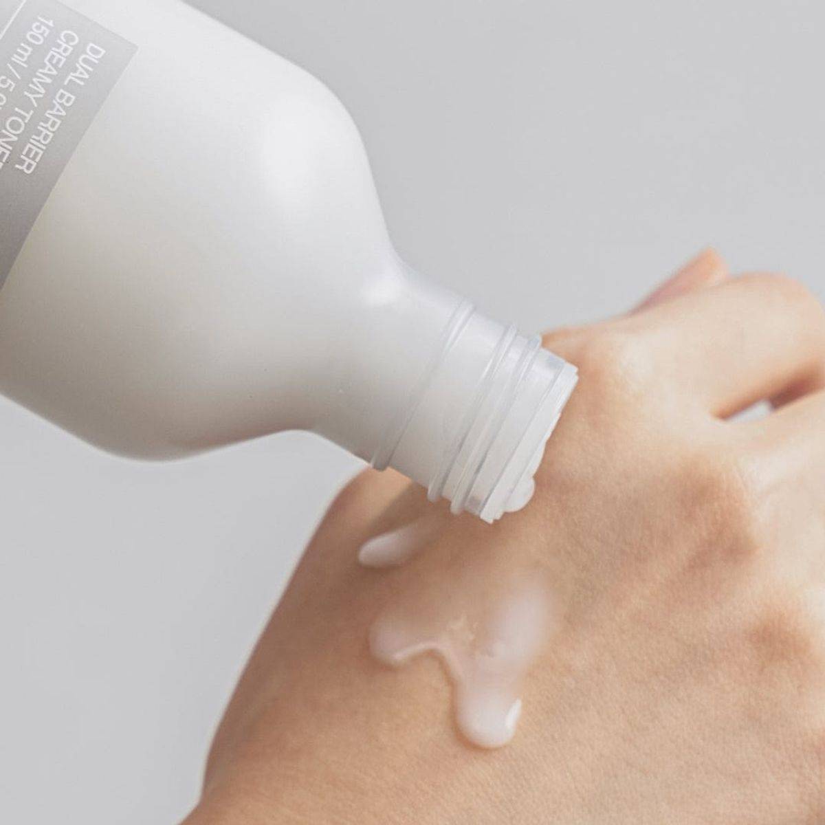 Celimax Dual Barrier Creamy Toner is a facial astringent made with ceramides and peptide, designed for hydrating and soothing the skin. Suitable for all skin types, it absorbs quickly without a greasy finish, enhancing the effect of subsequent skincare products.