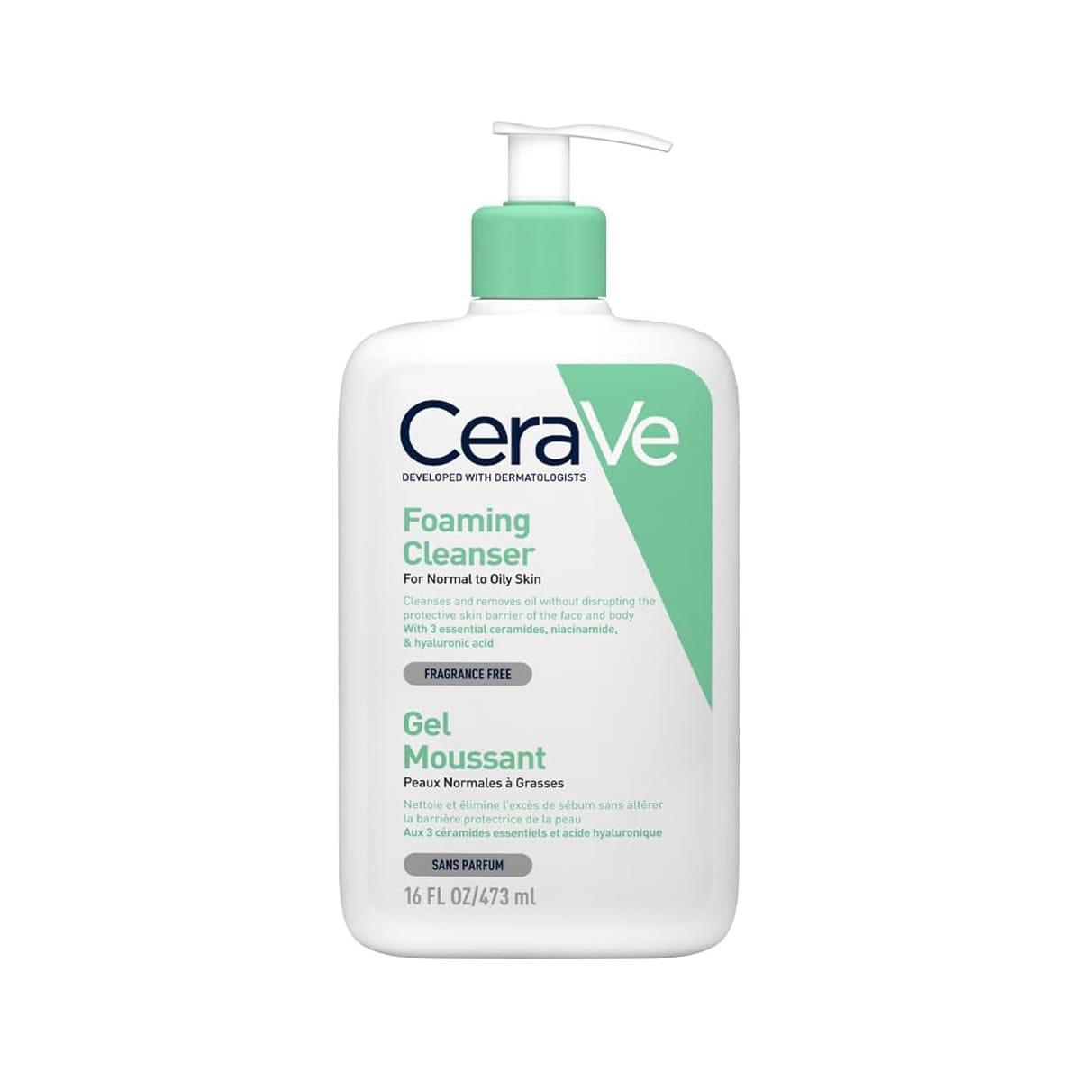 CeraVe Foaming Cleanser is designed for normal to oily skin. It cleanses and removes oil without disrupting the protective skin barrier. Formulated with 3 essential ceramides, niacinamide, and hyaluronic acid, it is fragrance-free and non-comedogenic.