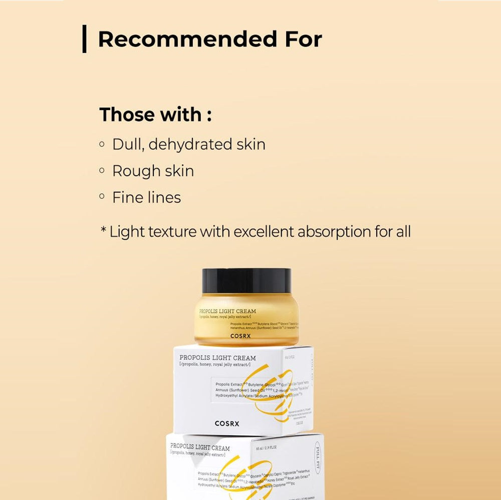 Moisturizing cream with high percentage of black bee propolis complex and antioxidants. Its light-weight, gel-like cream texture absorbs effortlessly onto skin, allowing you to use any circumstances you want. Makes your skin more plump and hydrated when using with Full fit Propolis toner and ampoule.