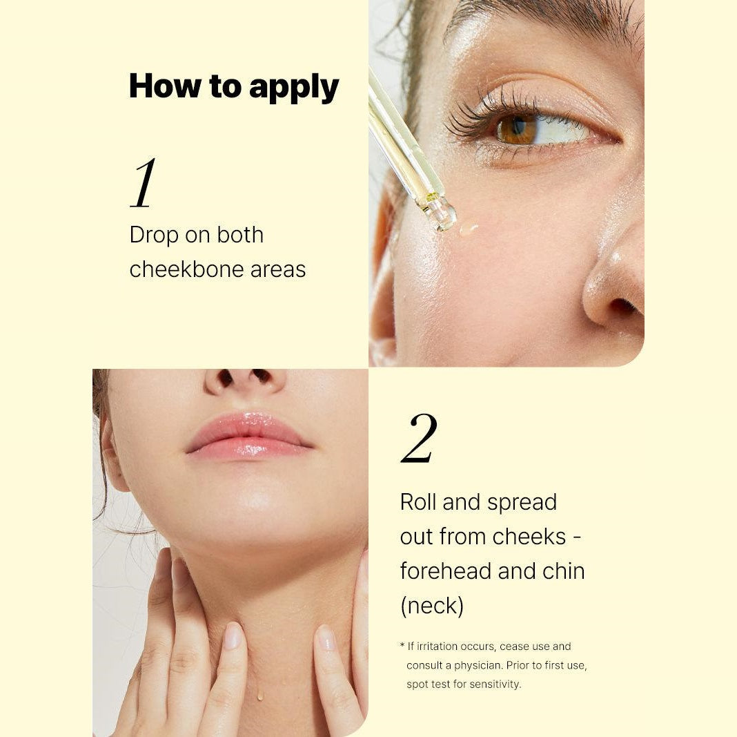 Cleanse your skin and put a toner. Then apply few drops of serum to the skin. User fingertips to gently massage and absorb the serum, starting from the inside of the face working towards the edges
