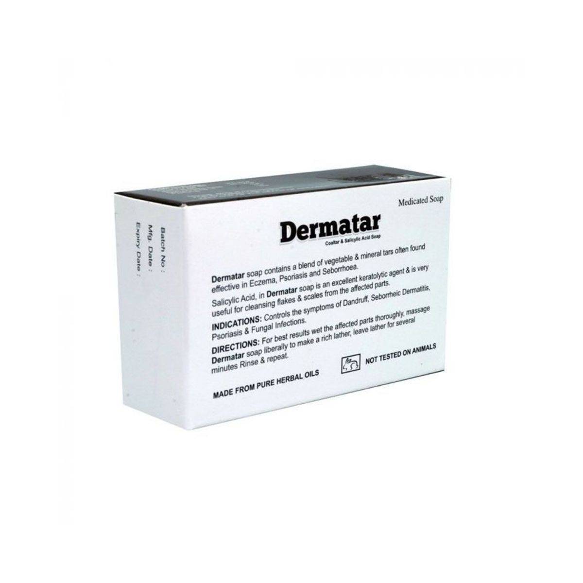Dermatar Bar Soap is a medicated soap formulated with coaltar and salicylic acid, ideal for controlling seborrhea, psoriasis, and dermatitis. It effectively manages pimples and cleanses flakes and scales from affected areas. Suitable for topical use on all skin types.