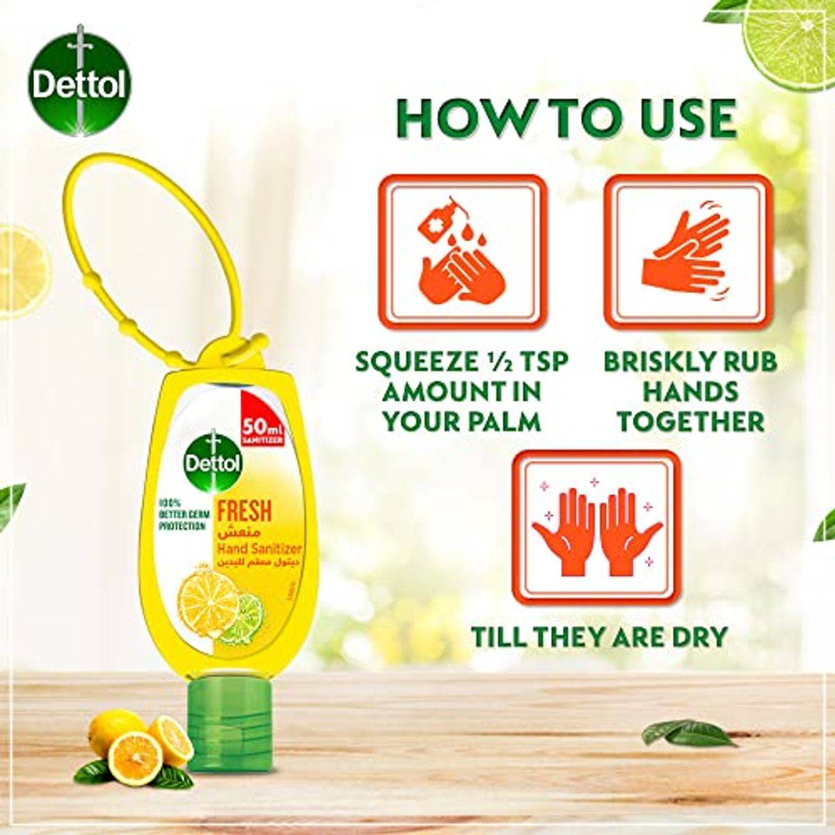 Dettol Antibacterial Hand Sanitizer Gel with Jacket offers 100% better protection from germs. This 50ml portable sanitizer is rinse-free, making it perfect for on-the-go use. Dermatologically tested, it ensures your hands remain clean and fresh without the need for soap or water.