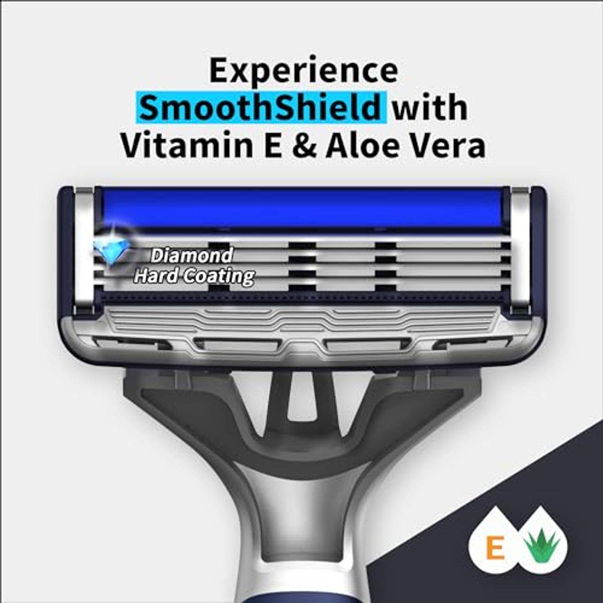 The Dorco Razor Disposable Pace 4 Men offers a 4-blade system for a close, smooth shave. Featuring a SmoothShield lubricating strip with Vitamin E & Aloe Vera, it ensures comfort and protection. The pivoting head and rubber grip handle provide control and ease of use, making it ideal for daily grooming.