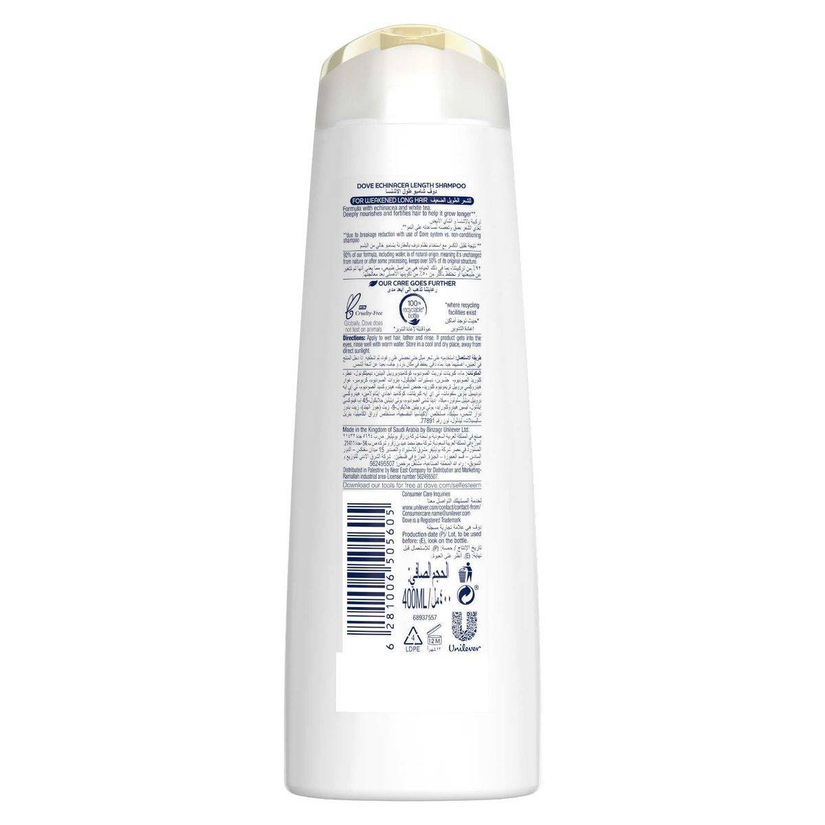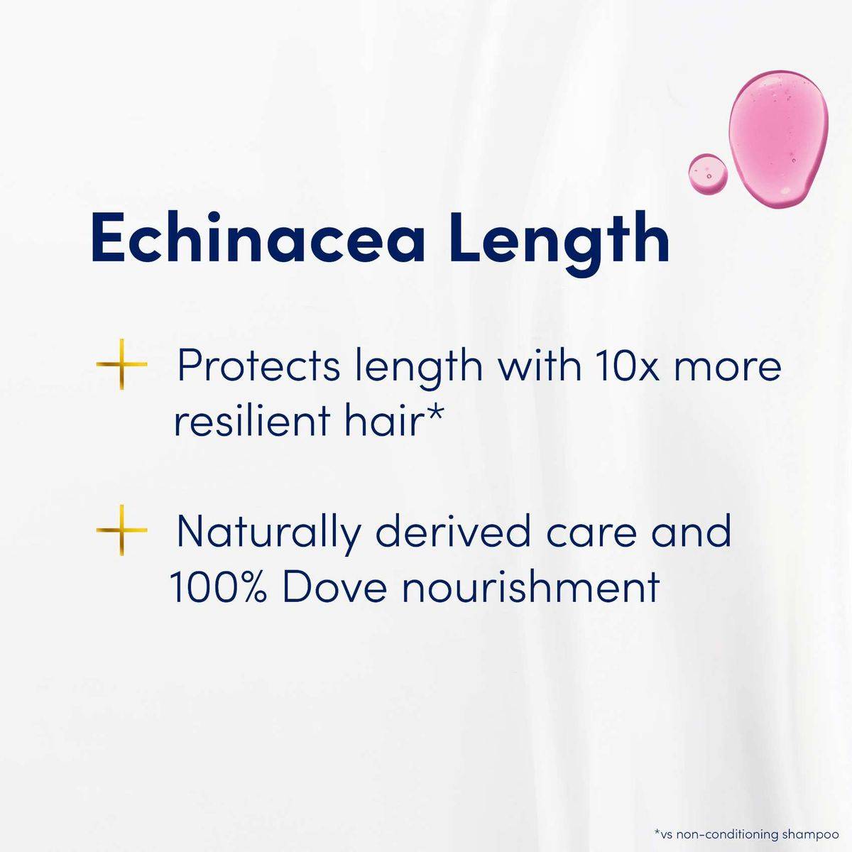 Dove Echinacea Length Shampoo is designed for weakened long hair, enriched with Echinacea and White Tea extracts. It nourishes and strengthens hair, promoting growth and reducing breakage. Ideal for daily use, it provides 100% nourishment and resilience.