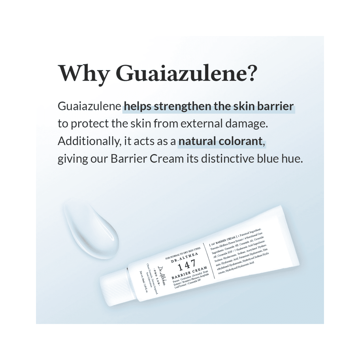 - Strengthens skin barrier with Guaiazulene