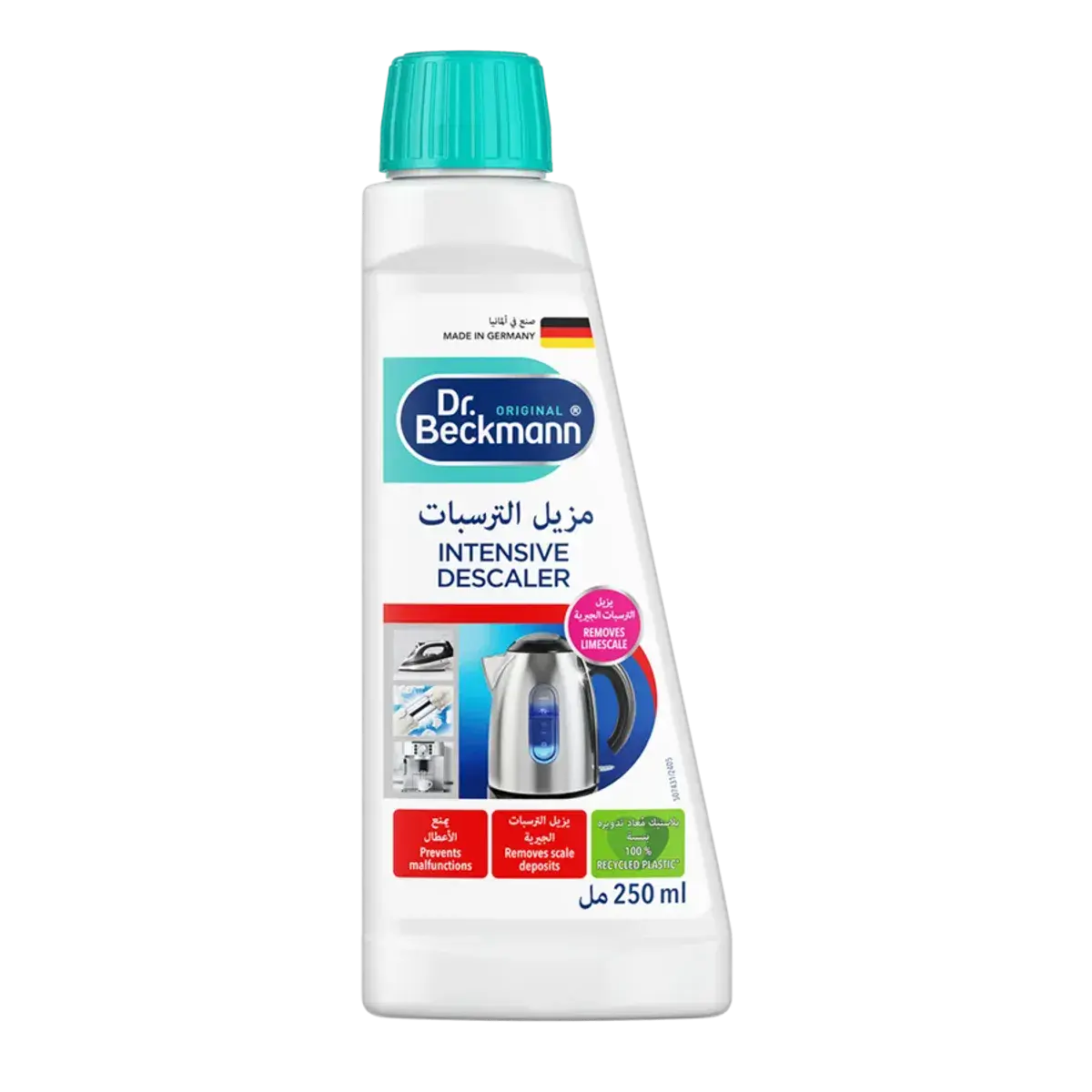 Dr. Beckmann Intensive Descaler is a powerful solution for removing limescale deposits. Ideal for kettles, coffee machines, and other appliances, it helps prevent malfunctions and extends the life of your devices. Made in Germany, this product uses 100% recycled plastic packaging.