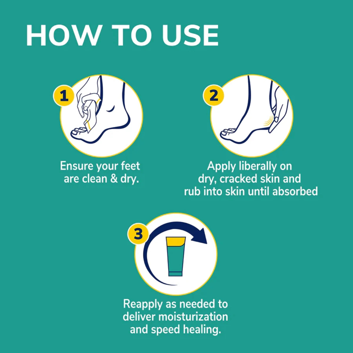 Apply liberally on dry, cracked, or flaky skin (focusing on heels and calluses). Gently rub into skin until absorbed. Reapply as needed or use nightly, often covered with socks for intensive results.