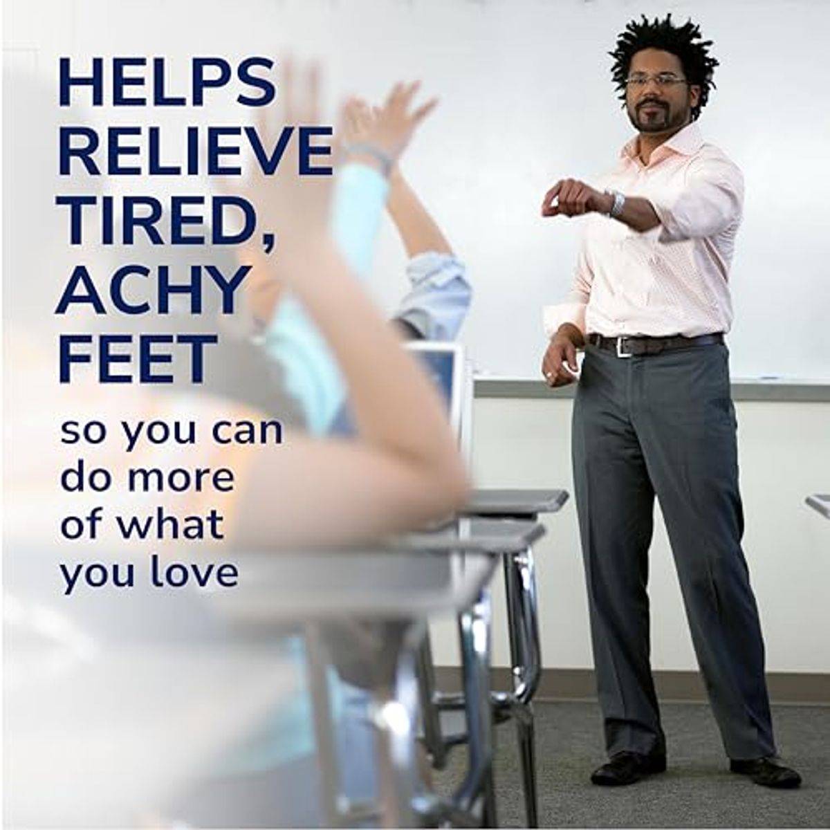 Dr. Scholl's Energizing Comfort Massaging Gel Insoles provide all-day comfort and energy. Designed with patented gel technology, they relieve tired, achy feet and reduce muscle fatigue. Ideal for everyday use in various shoe types, they fit men's sizes 8-14 and can be trimmed for a custom fit.