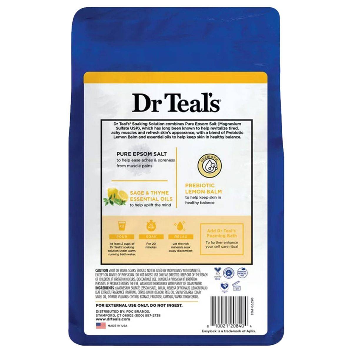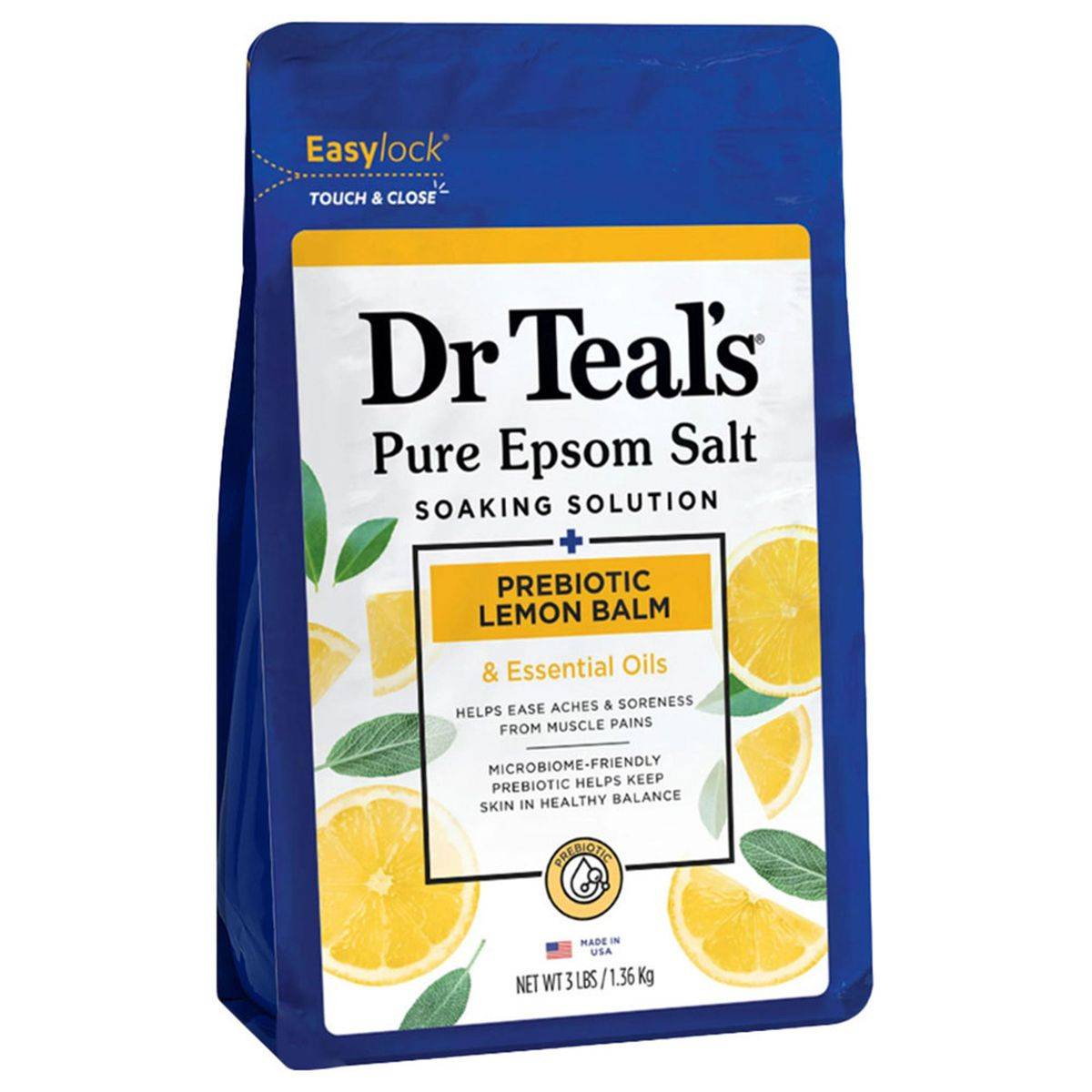 - Dr Teals Pure Epsom Salt Soaking Solution Prebiotic Lemon Balm 1.36kg