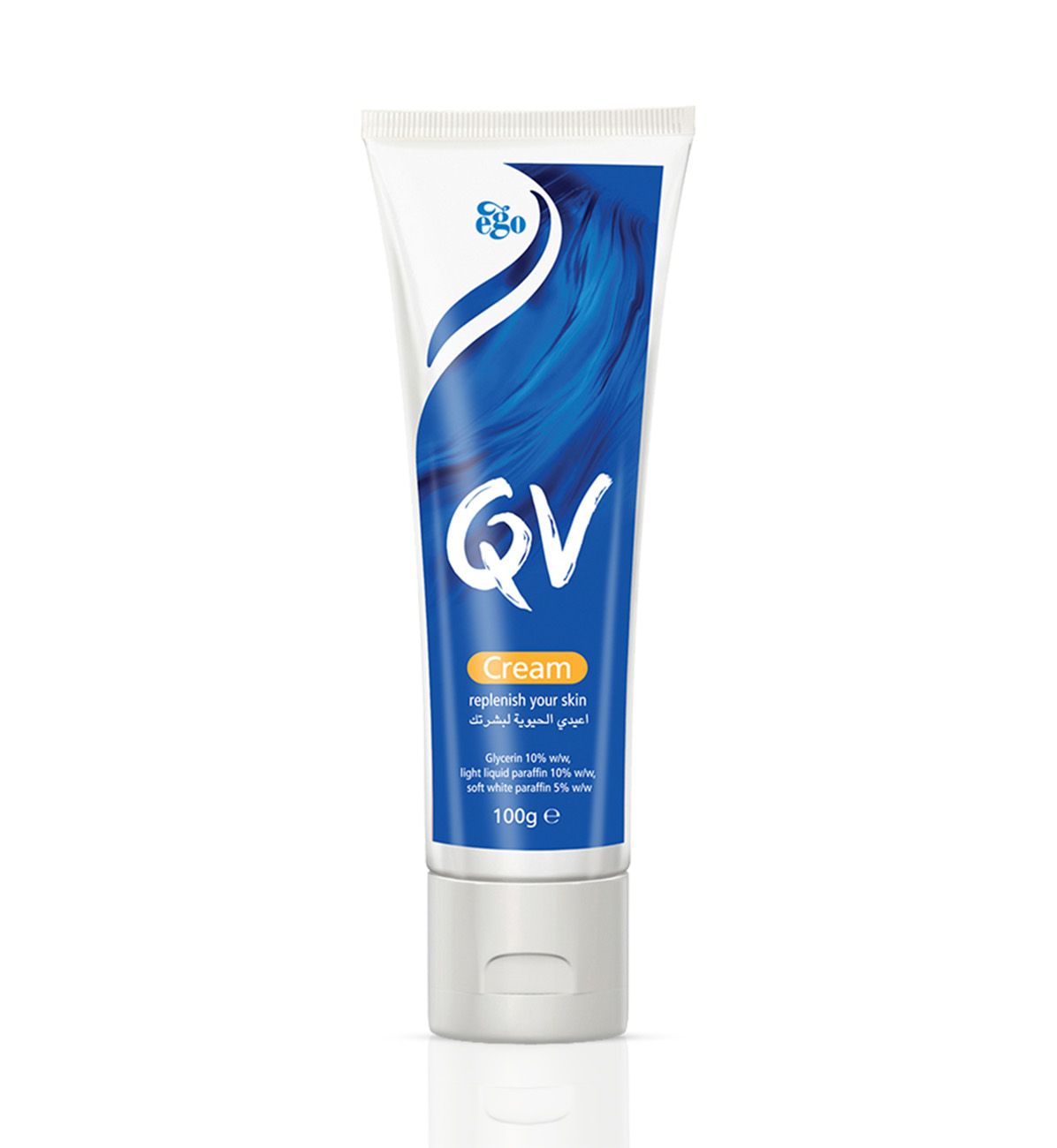 QV Cream is a rich, protective cream designed to replenish and repair dry skin. It contains squalene, a natural component in the skin's oil, and is suitable for dry or sensitive skin, eczema, dermatitis, and psoriasis. Free from perfume, lanolin, and propylene glycol, it helps seal in natural moisture by acting as a protective barrier. Ideal for infants and the elderly.