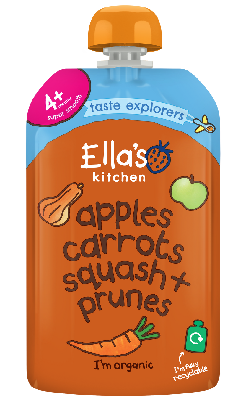 - Ellas Kitchen Organic Puree 4+ Months Butternut Squash Carrots Apples + Prunes 120g