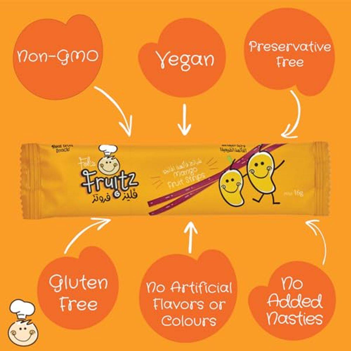 Felis Fruitz Mango Fruit Strips are a delicious and healthy snack made from real fruit puree. These gluten-free strips offer a natural mango flavor without artificial colors or preservatives. Perfect for on-the-go snacking, each pack contains five convenient 16g strips, making them ideal for lunchboxes or a quick treat.