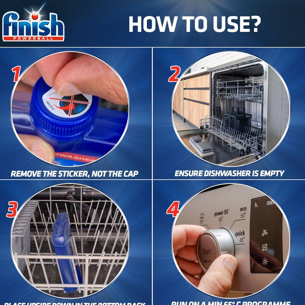 Finish is a global leader in automatic dishwasher products. This is a liquid cleaner designed to clean the interior and working parts of the dishwasher.