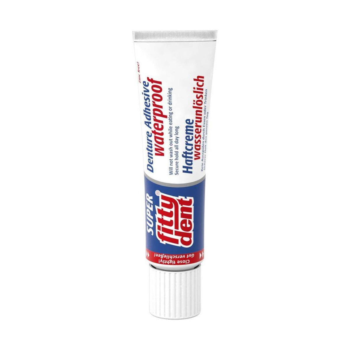 Fitty Dent Denture Adhesive Cream offers a waterproof, zinc-free solution for secure denture placement. Ideal for daily use, it ensures a strong hold without slipping, even while eating or drinking.