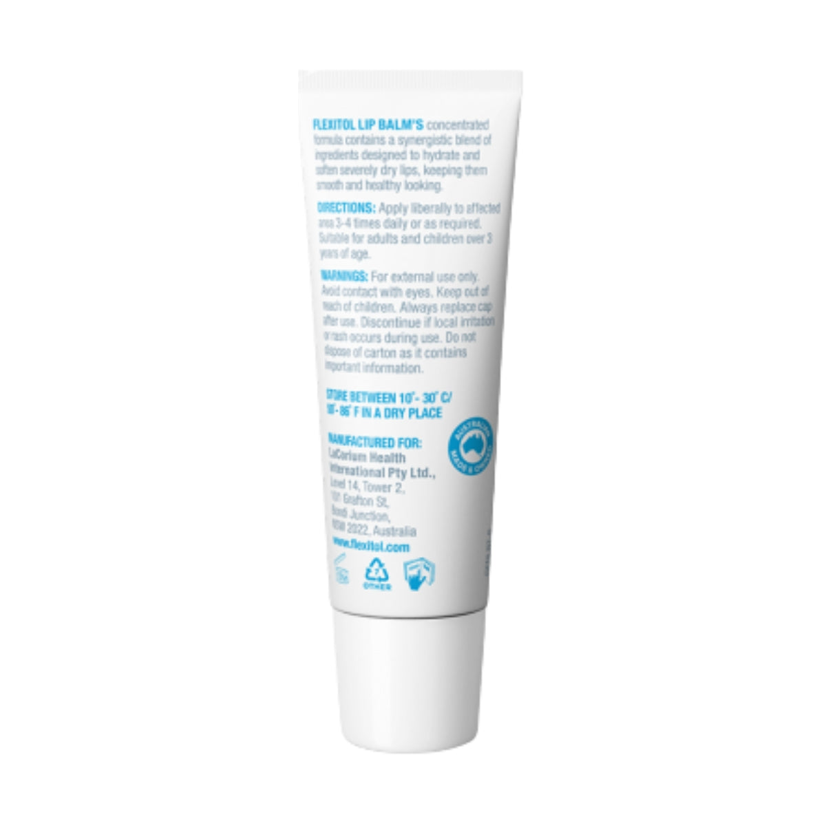 FLEXITOL LIP BALM is formulated to hydrate and soften severely dry, cracked, flaky, chapped, or peeling lips. Flexitol's unique, steroid-free combination of ingredients keeps lips comfortable, smooth, and healthy looking. Suitable for adults (men and women) and children over 12 years of age. Flexitol Lip Balm deeply moisturizes with a special blend containing Lanolin, Urea, Petrolatum, Cacao Butter, Water, and a Lipid Complex (Glyceryl Stearate, Biphenyl Alcohol, Palmitic Acid, Stearic Acid, Lecithin, Lauryl Alcohol, Myristyl Alcohol, Acetyl Alcohol). Menthol, Camphor, and Clove Leaf Oil relieve discomfort. Flexitol Lip Balm is suitable for dry lips caused by or related to aging, dehydration, exposure to sun, wind, or dry indoor air, acne medications including Accutane, blood pressure or vertigo medications, chemotherapy or radiation treatments, diabetes, eczema, psoriasis, non-fungal angular cheilitis, thyroid disease, allergies, smoking, lip licking, snoring or breathing with an open mouth. Not designed to treat cold sores/fever blisters (herpes simplex), fungal or bacterial cheilitis Does not contain steroids and is not habit-forming/addictive.