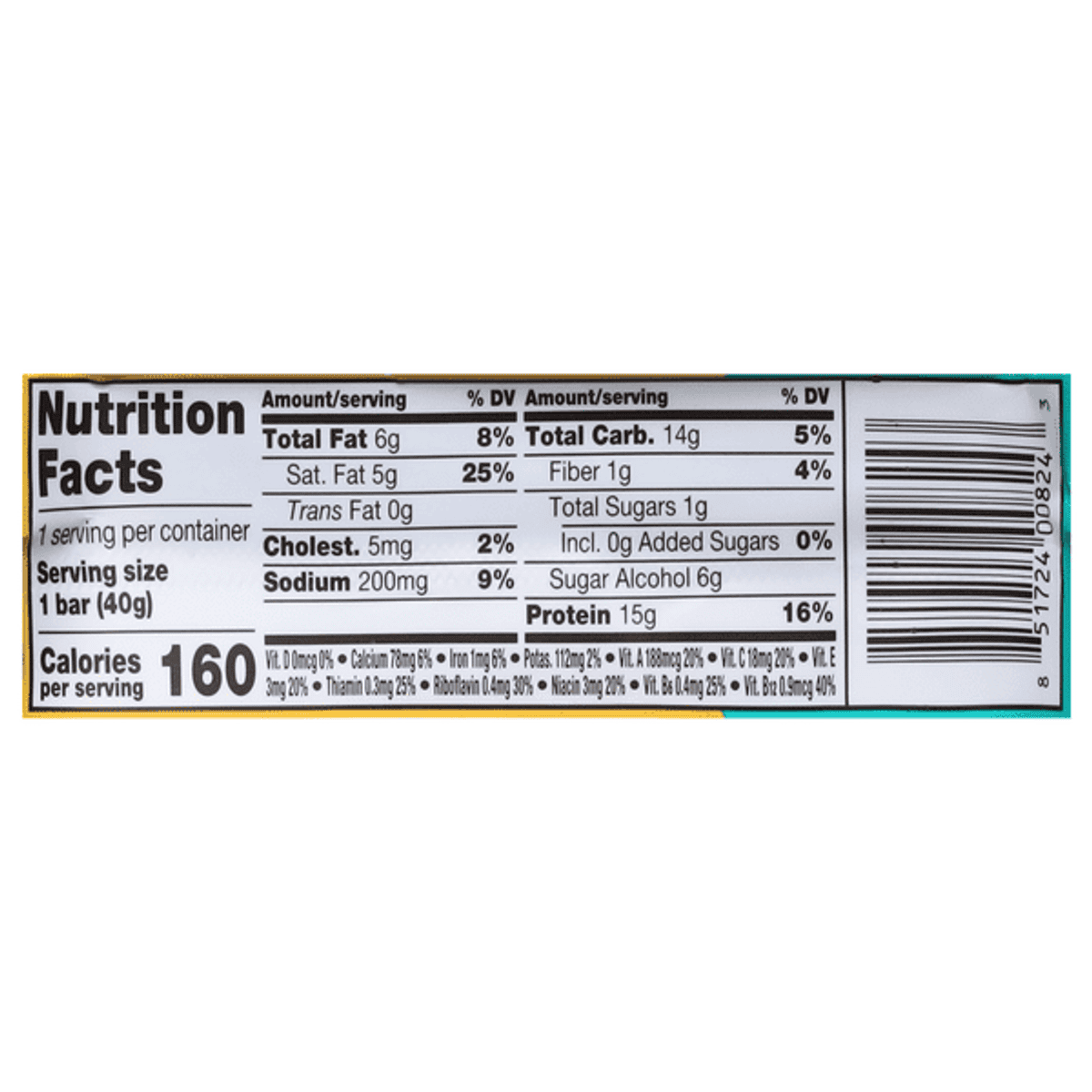 Milk Protein, No Added Sugar Milk Chocolate with Sweetener 25% (Sweetener [Maltitol], Cocoa Butter, Whole Milk Powder, Cocoa Mass, Emulsifier [Soy Lecithins], Flavoring), Collagen Hydrolysate, Humectant (Glycerol), Isomalto-Oligosaccharide*, Water, Soy Crispies (Soy Protein Isolate, Tapioca Starch, Barley Malt Extract, Salt), Palm Fat, No Added Sugar White Chocolate with Sweetener (Sweetener [Maltitol], Cocoa Butter, Whole Milk Powder, Emulsifier [Soy Lecithins], Natural Vanilla Flavoring), Chocolate (Cocoa Powder, Cocoa Mass, Sugar), Natural Flavoring, Salt, Vitamins (Vitamin C [Ascorbic Acid], Vitamin E [Tocopheryl Acetate], Vitamin B6 [Pyridoxine Hydrochloride], Vitamin B12 [Cyanocobalamine], Thiamin [Vitamin B1], Riboflavin [Vitamin B2], Niacin, Pantothenic Acid, Folic Acid), Sweetener (Sucralose).