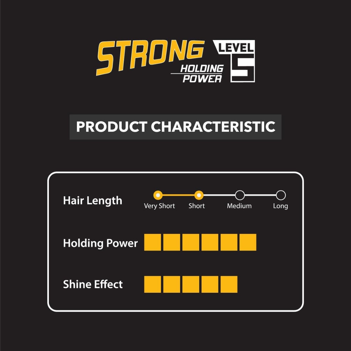 Super Hard Setting Power that holds hairstyle firmly. Gives Wet look & sets hair as you desire
