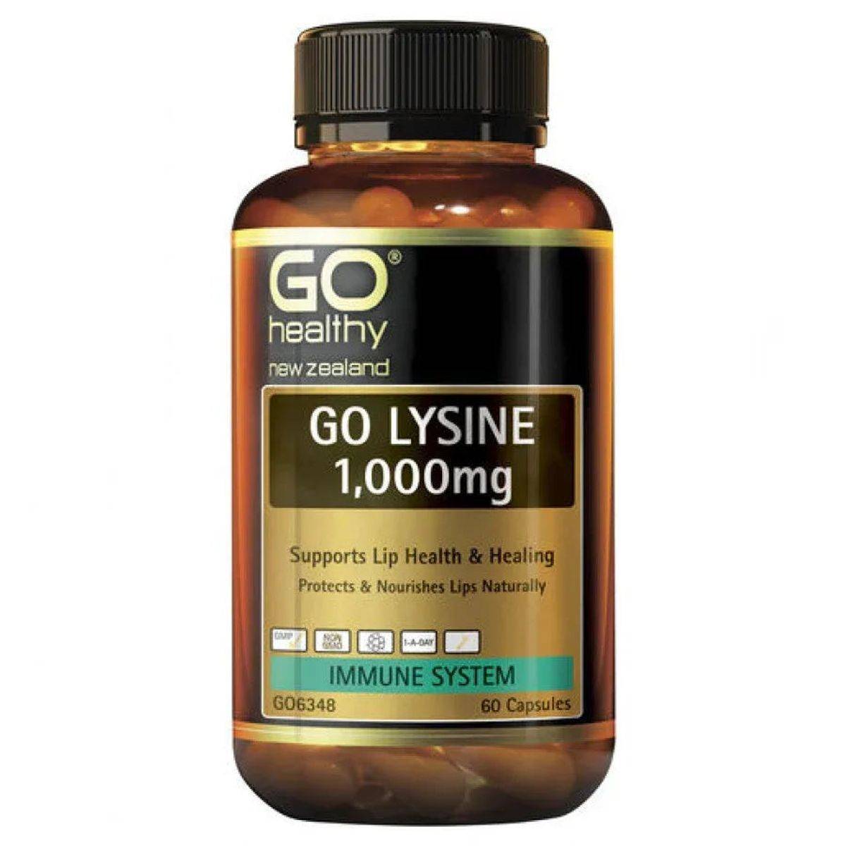 GO Healthy is a New Zealand-based supplement brand. Lysine is an essential amino acid, commonly supplemented in high doses to support immune function, particularly in managing cold sores (herpes simplex virus).