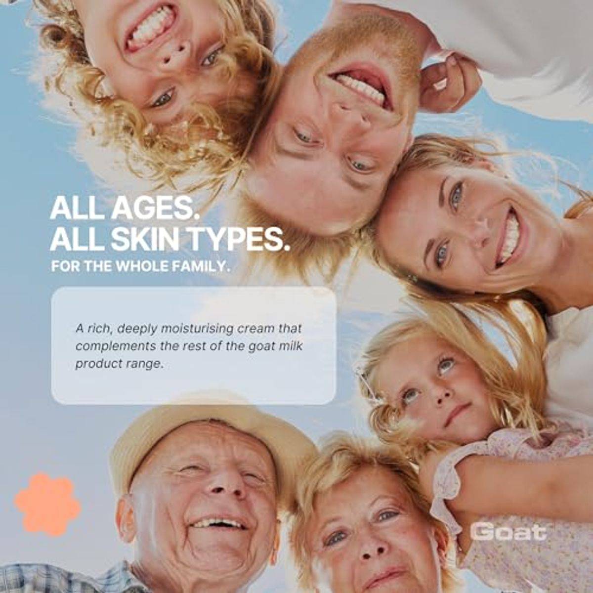 Water (Aqua), Helienthus annuus (Sunflower) Oil, Glyceryl Stearate, Cetearyl alcohol, PEG-20 Stearate, Glycerin, Prunus amygdalus (Sweet almond) Oil, Caprae Lac (Goat milk), Dimethicone, Fragrance (parfum), Amyl Cinnamal, Cinnamyl Alcohol, Linalool, Benzyl Benzoate, Citronellol, Alpha-Isomethyl Ionone, Acetyl Hexamethyl Tetralin, Cetyl palmitate, Triethanolamine, Mel (Manuka Honey), Collagen, Carbomer, Phenoxyethanol, 2-bromo-2Nitropropane1 (and) 3-Diol.