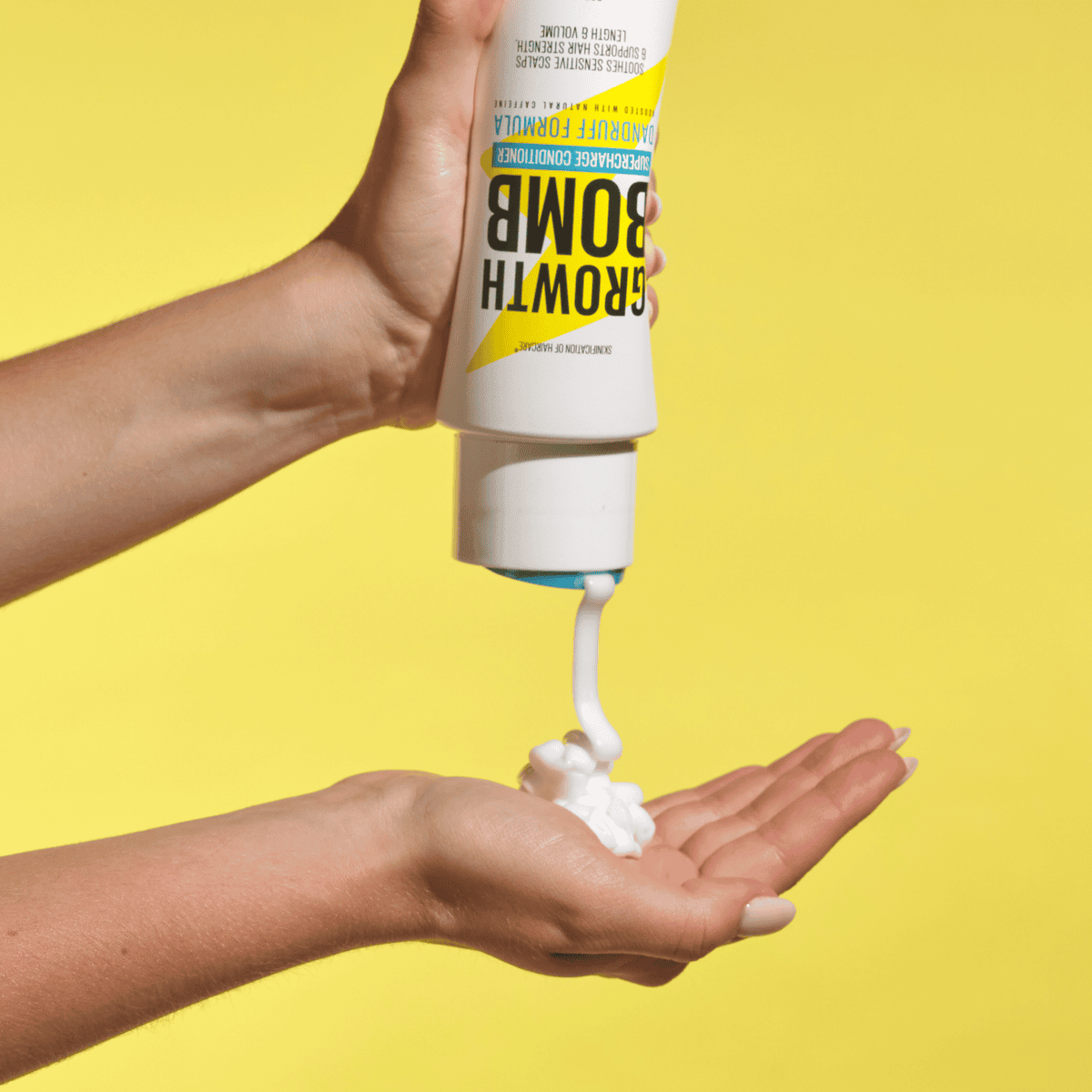 Growth Bomb Dandruff Conditioner is packed with natural caffeine and botanical extracts to soothe sensitive scalps and fight flakes. It hydrates and nourishes the scalp, supporting stronger, longer, fuller looking hair.
