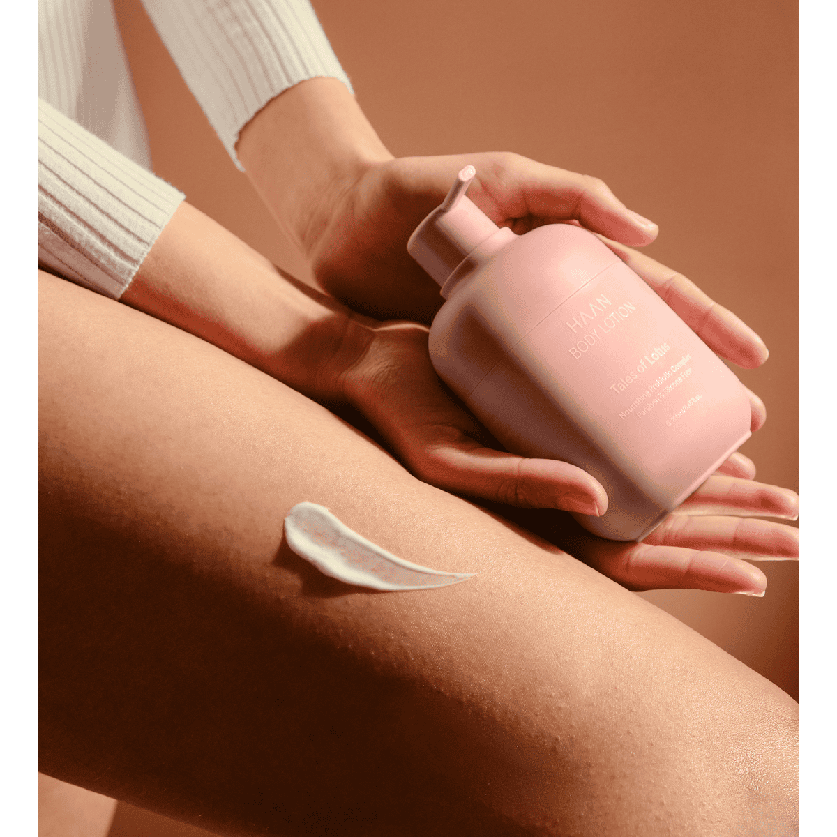 Haan Body Lotion Tales Of Lotus 250ml is designed to deeply nourish your skin, leaving it healthier, smoother, and softer. It contains 97% natural ingredients, including Silanol firming and a prebiotic complex to restore your skin's microbiome balance. The lotion features a fresh fragrance inspired by exotic flora and spiritual symbols, with notes reminiscent of Oriental Forests and Lotus Flowers.