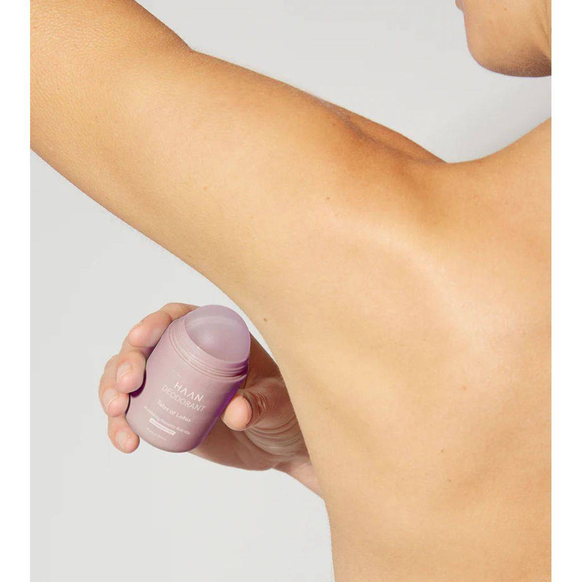 Haan Deodorant Tales Of Lotus offers 24-hour protection with a floral aroma. Made with 94% natural ingredients, it balances the skin's microbiome and hydrates. Aluminum-free and suitable for sensitive skin.