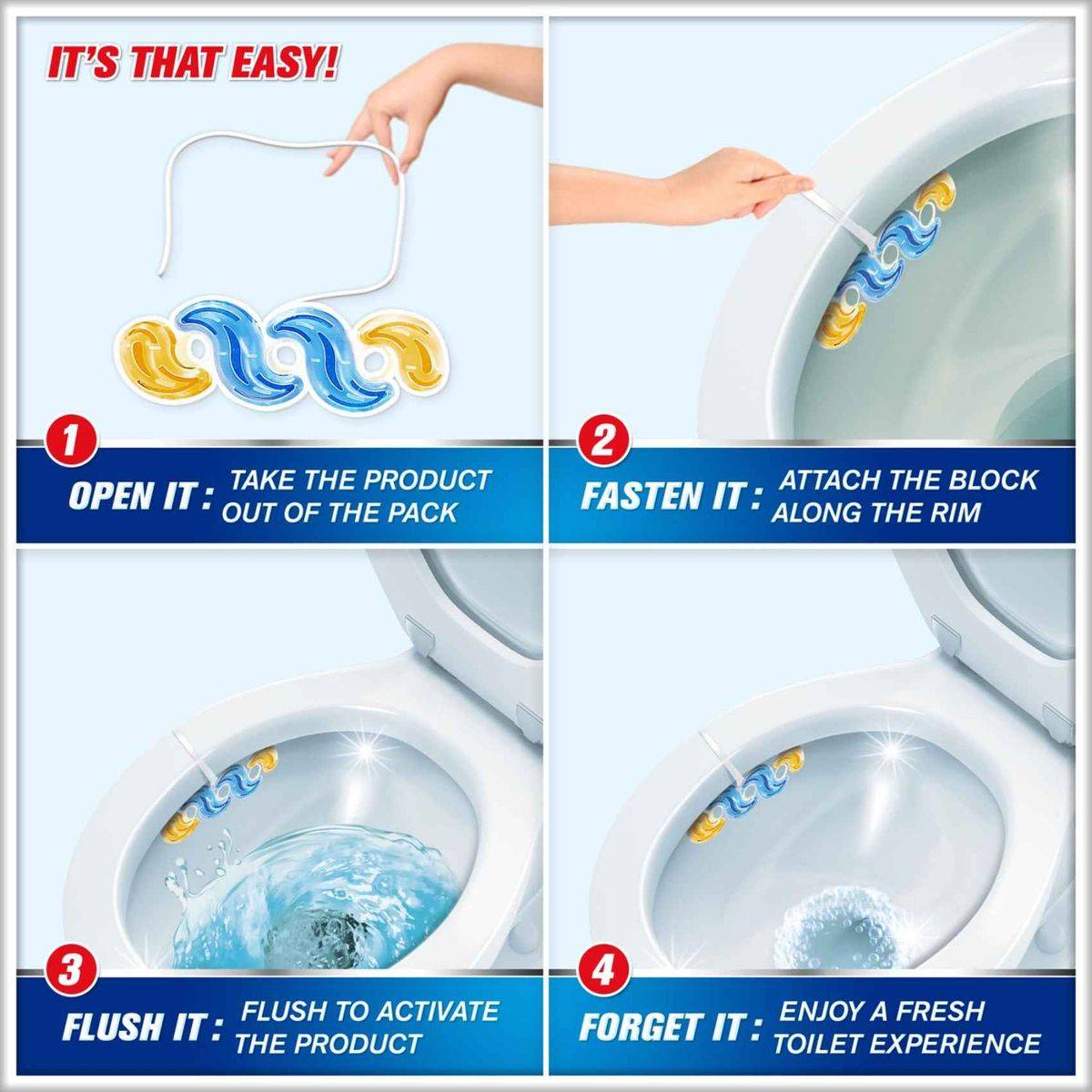 Place the block unit securely over the rim of the toilet bowl where water flow is best. Ensure it hangs correctly inside the bowl.