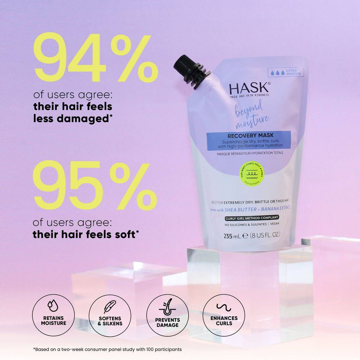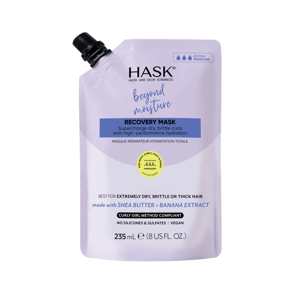 HASK Recovery Mask Extra Moisture is a rich, buttery conditioning mask designed to increase slip in extremely dry, breakage-prone hair. Infused with ultra-moisturizing and fortifying ingredients like shea butter and banana extract, it guards against future damage and helps reveal shinier, healthier-looking curls from first use.