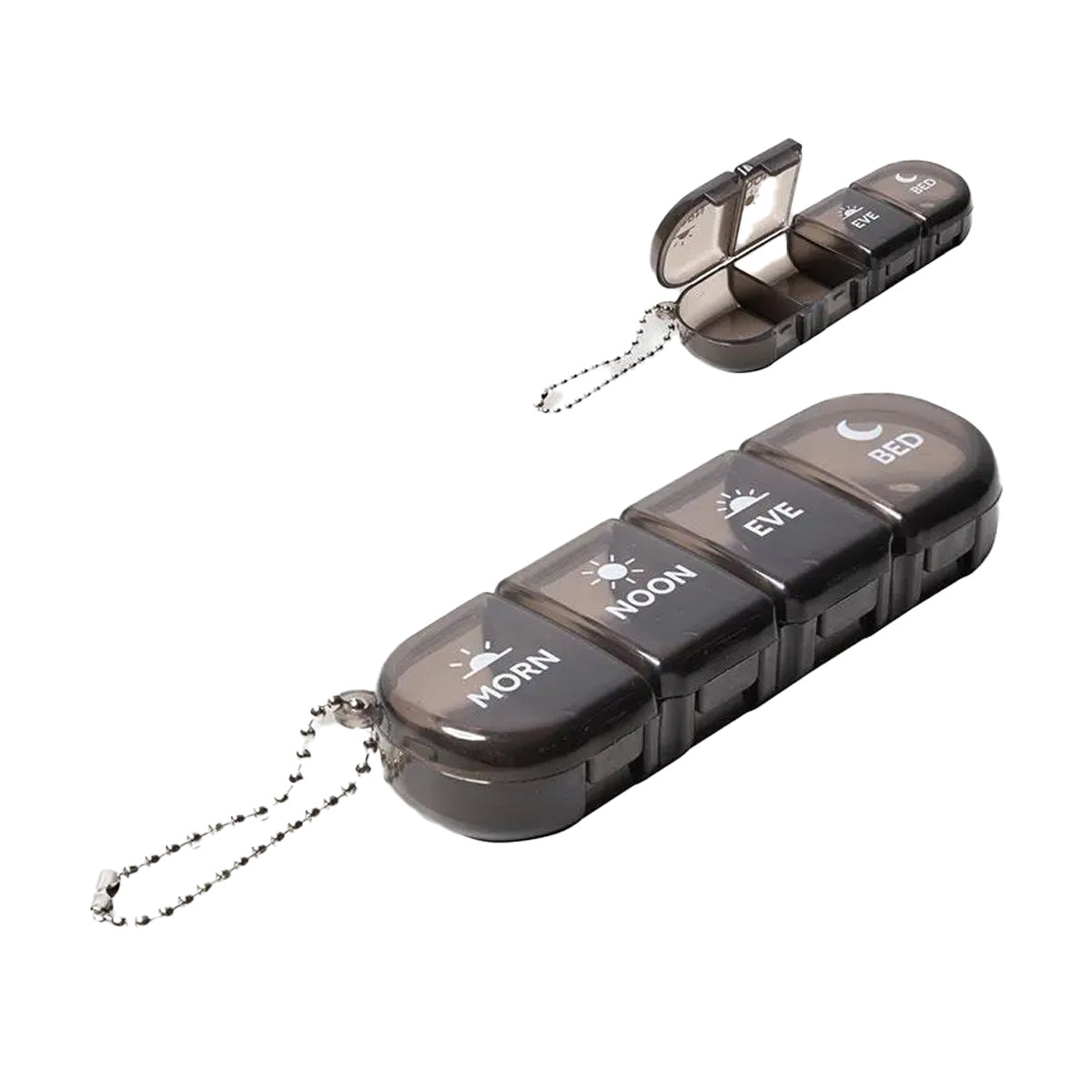 A small container designed for sorting a single day's medication or supplements. Features: Multiple compartments (e.g., up to 4 doses). Pocket-sized for daily portability. Secure lid. Made from BPA-Free Plastic.