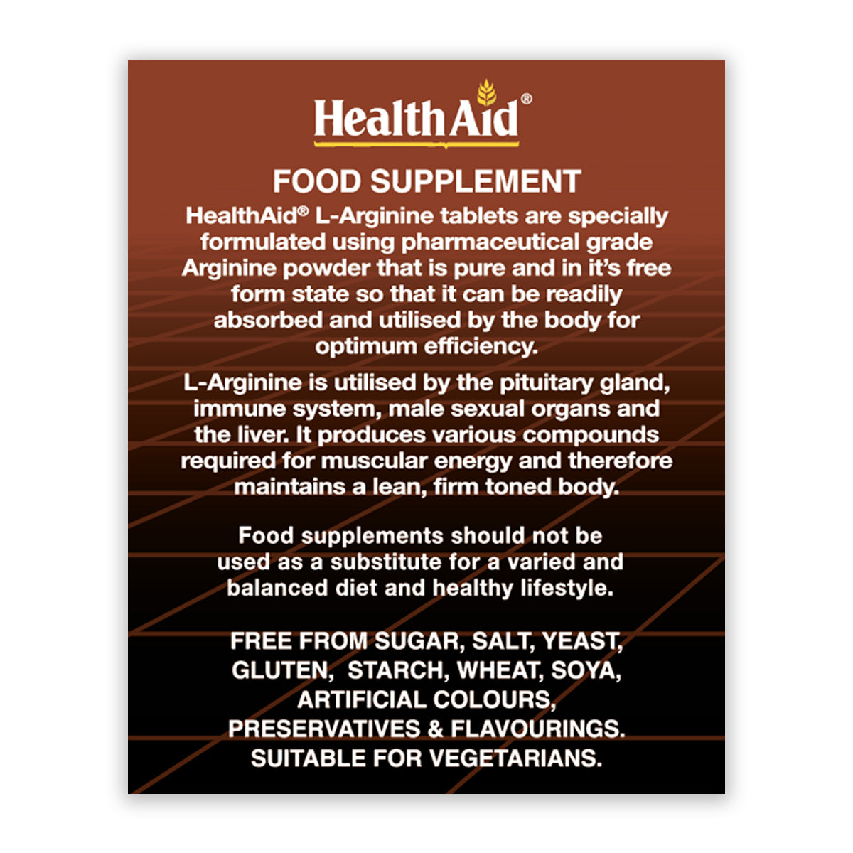 HealthAid L-Arginine 500mg tablets are designed to support cardiovascular health and enhance the immune system. Each tablet contains pure L-Arginine, an amino acid essential for hormone secretion and toxin removal. Ideal for maintaining normal blood pressure and promoting overall wellness.