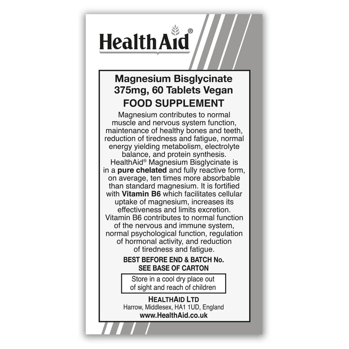 - HealthAid Magnesium Bisglycinate 375mg 60 Tablets