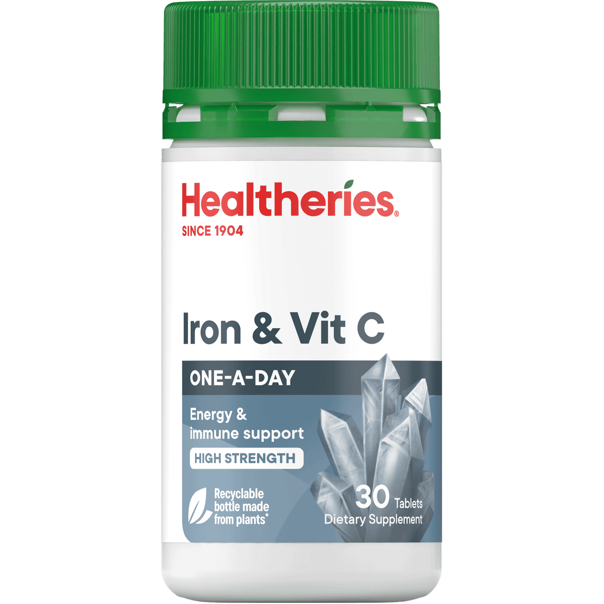 Healtheries Iron & Vit C Tablets are designed to boost energy and support immune health. Each tablet provides 20mg of Iron and 40mg of Vitamin C for optimal absorption. Ideal for vegetarians, athletes, and individuals with increased iron needs.