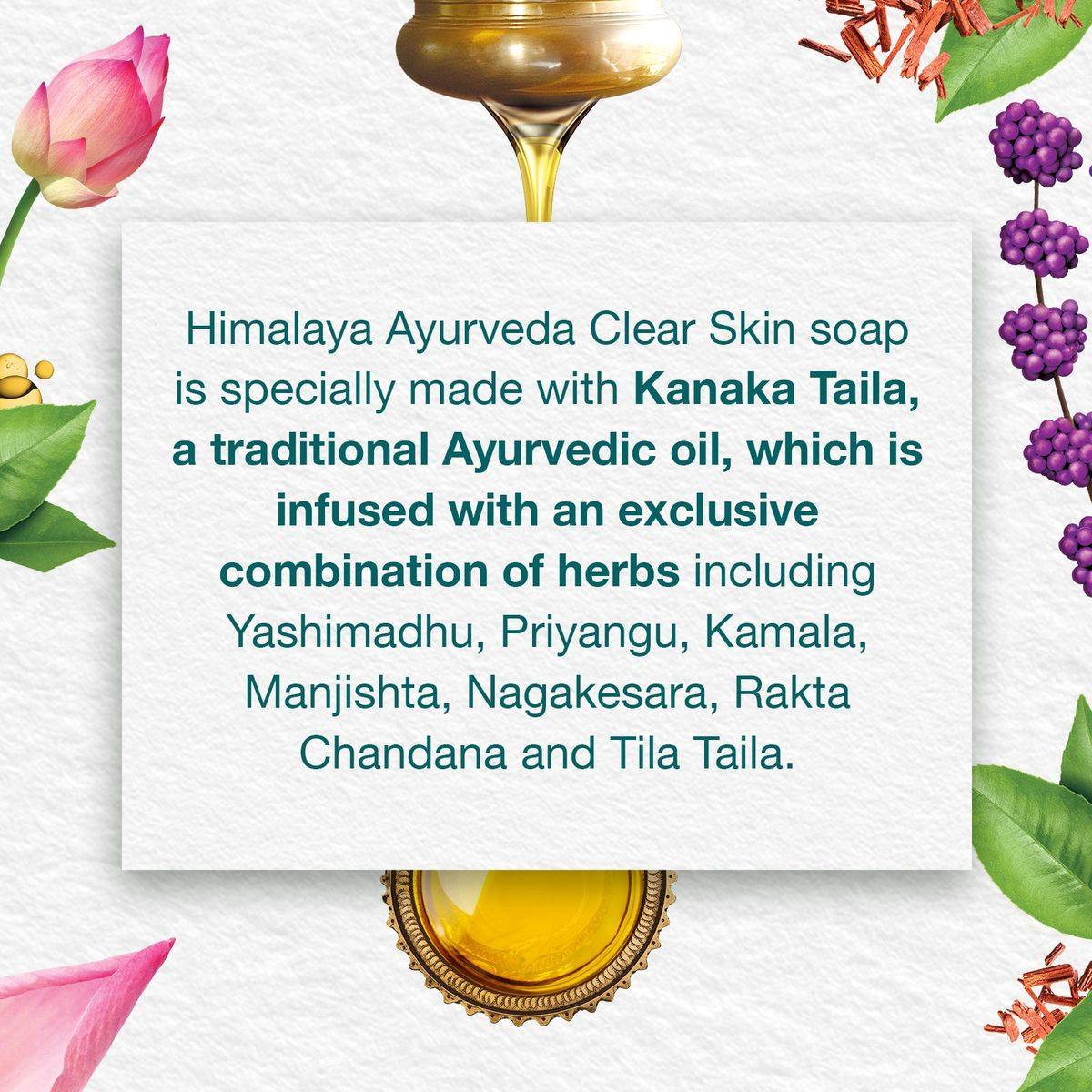 Himalaya Ayurveda Clear Skin Soap is a herbal cleansing bar enriched with Ayurvedic ingredients like Kanaka Taila. It purifies the skin, removes impurities, and helps maintain clear, healthy-looking skin. Ideal for daily use and suitable for all skin types.