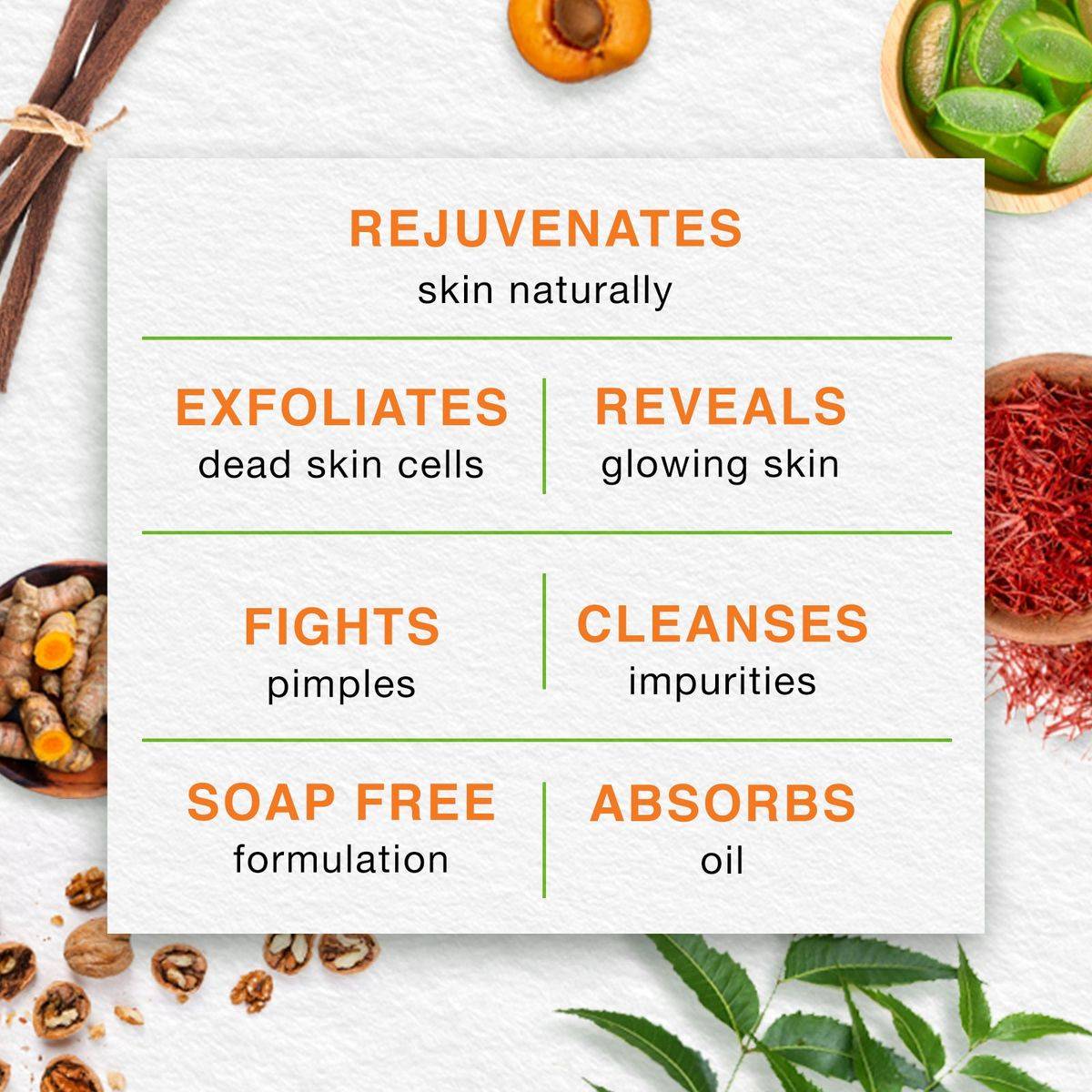 Apricot, Aloe Vera, Neem, Lemon.