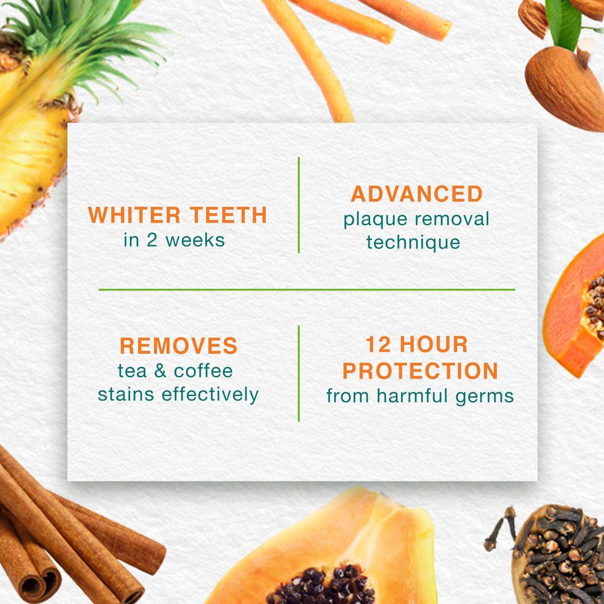 Himalaya Sparkly White Herbal Toothpaste is formulated with Plant Enzyme Technology from Papaya and Pineapple to gently remove surface stains, providing whiter teeth in 2 weeks. It contains Miswak to strengthen gums and maintain oral hygiene. Ideal for daily use, this toothpaste is 100% vegetarian and free from parabens.