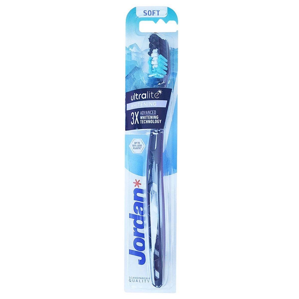 The Jordan Ultralite Whitening Soft Toothbrush is designed for effective plaque removal and superior cleaning. It features advanced whitening technology and uses up to 50% less plastic. Ideal for daily use, it is lightweight and perfect for sensitive gums.