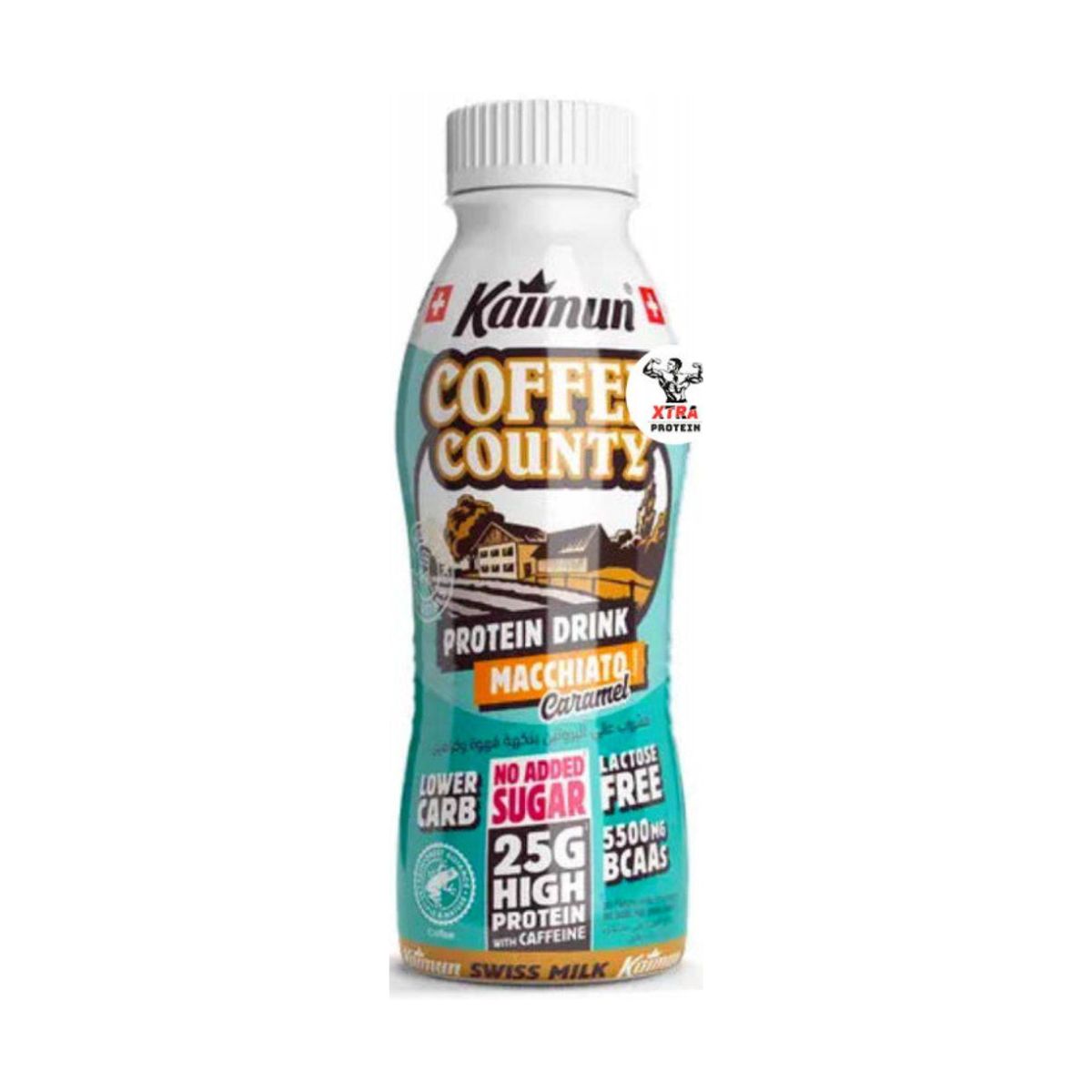 Experience the rich taste of caramel macchiato with Vimun Swiss Milk's high-protein drink. Each 330 ml serving provides 25 g of protein, 8.3 g of sugars, and is infused with strong Arabica coffee and creamy milk. Perfect for a protein boost and energy lift, not recommended for children or pregnant women due to high caffeine content.