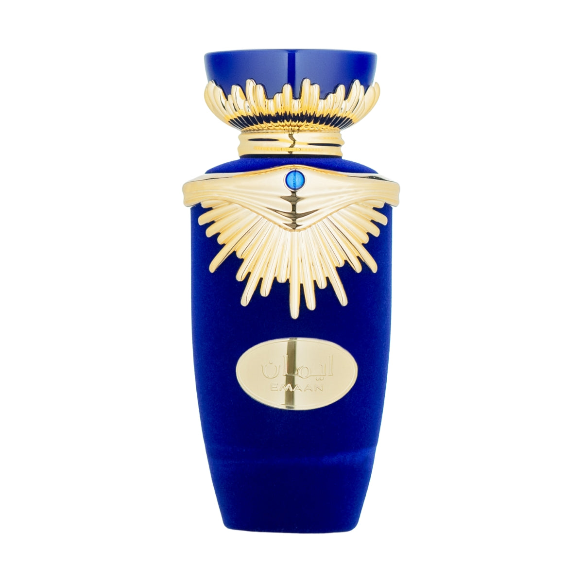 Emaan by Lattafa Perfumes is a Chypre Floral fragrance for women. This is a new fragrance. Emaan was launched in 2022. Top notes are Bergamot, Black Currant and Orange Blossom; middle notes are Tuberose, Jasmine and Marigold; base notes are Vanilla, Musk, Patchouli and Cedarwood.