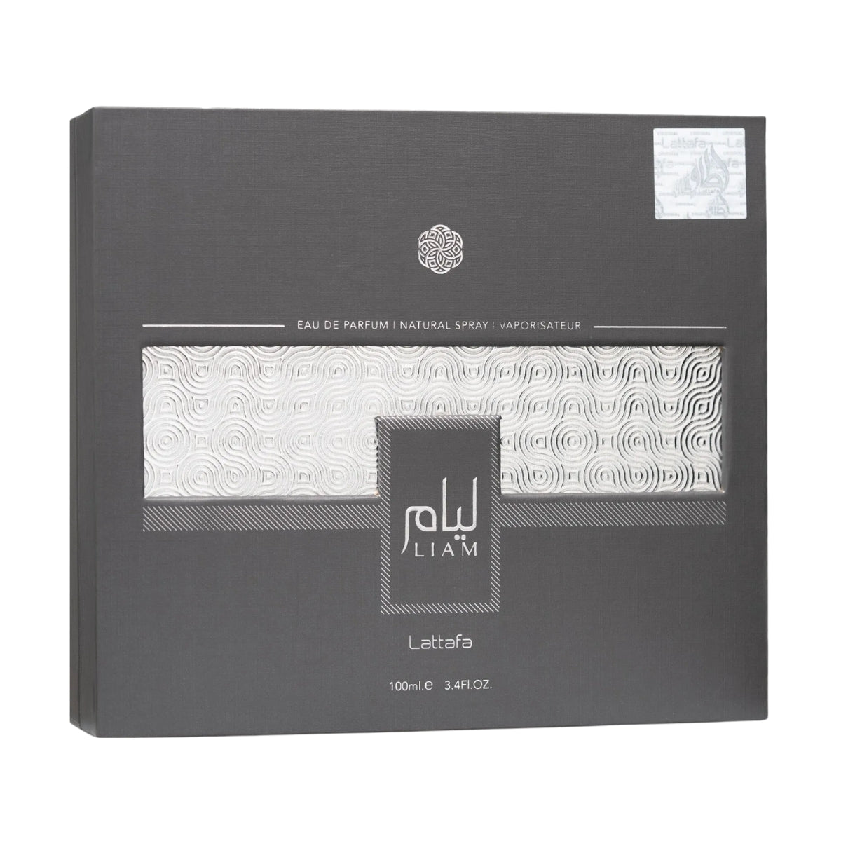 Liam by Lattafa is a sophisticated unisex Eau De Parfum featuring a blend of exotic spices and creamy woods. With top notes of cardamom, fig, and black tea, it transitions to a heart of iris, labdanum, and vetiver, finishing with a base of vanilla, sandalwood, tonka, and patchouli. Ideal for those seeking a luxurious and long-lasting fragrance.