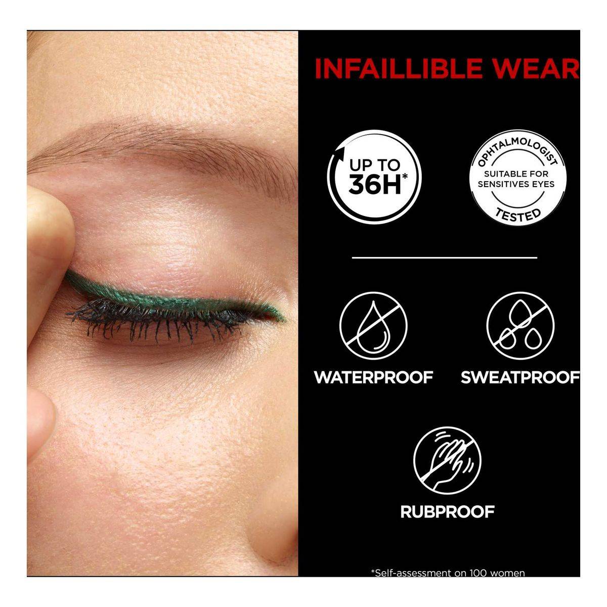 The L'Oréal Paris Infallible Grip 36Hr Gel Automatic Eyeliner offers long-lasting, smudge-resistant wear with a waterproof formula. Ideal for sensitive eyes, it provides precise application with a built-in smudger for a smoky look.